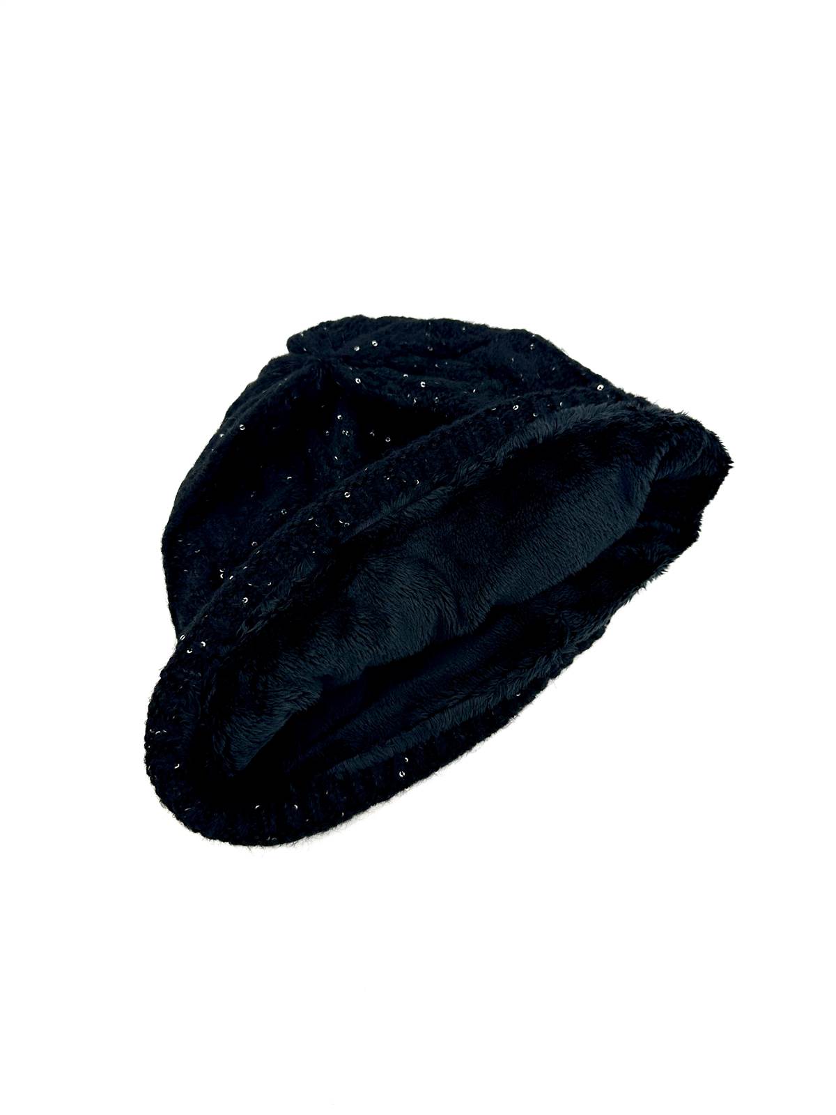 Cuffia Ancona in misto lana con paillettes nero