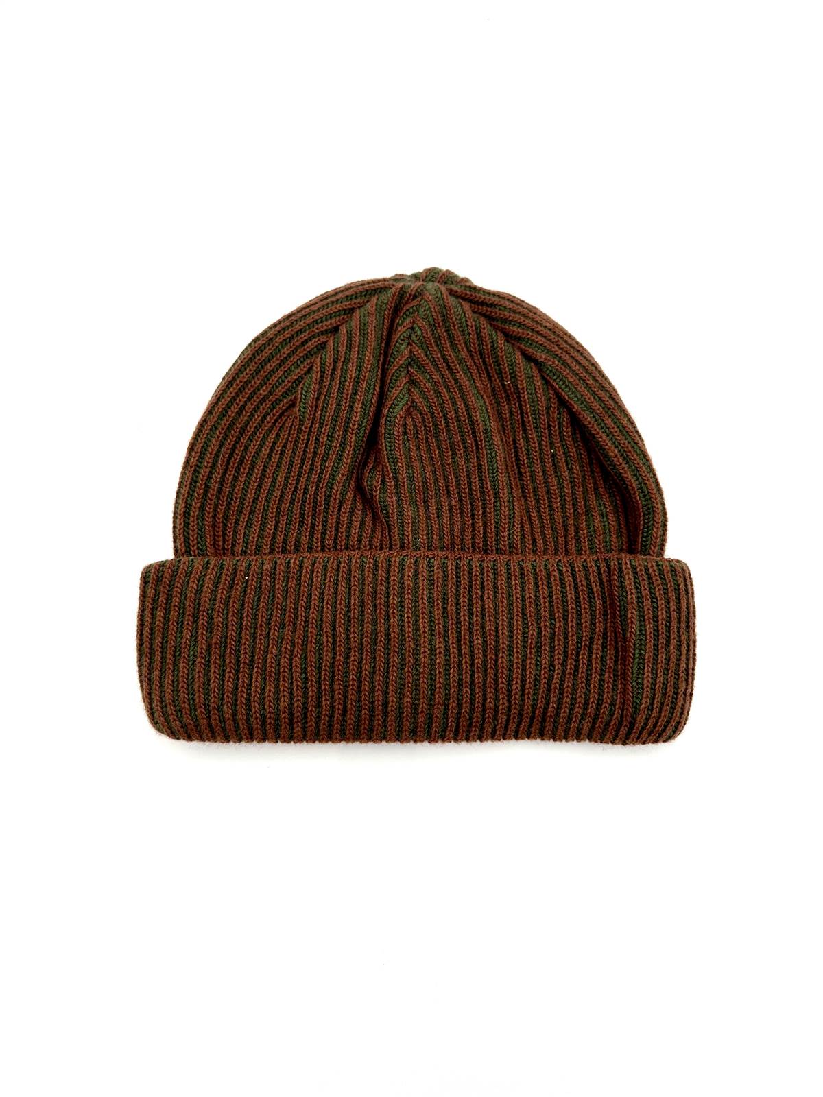 Cuffia Massimo rigato coccio-oliva in misto lana