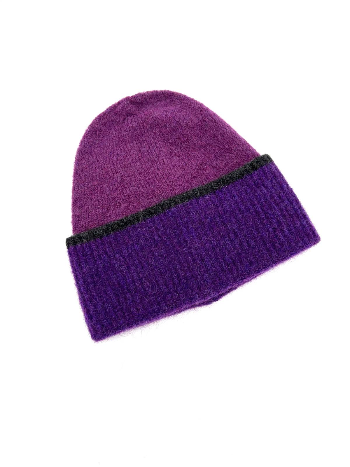 Cuffia misto lana bicolor verde-viola