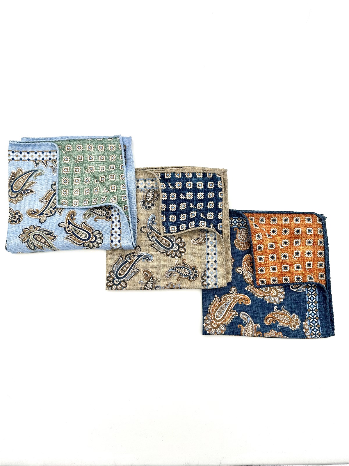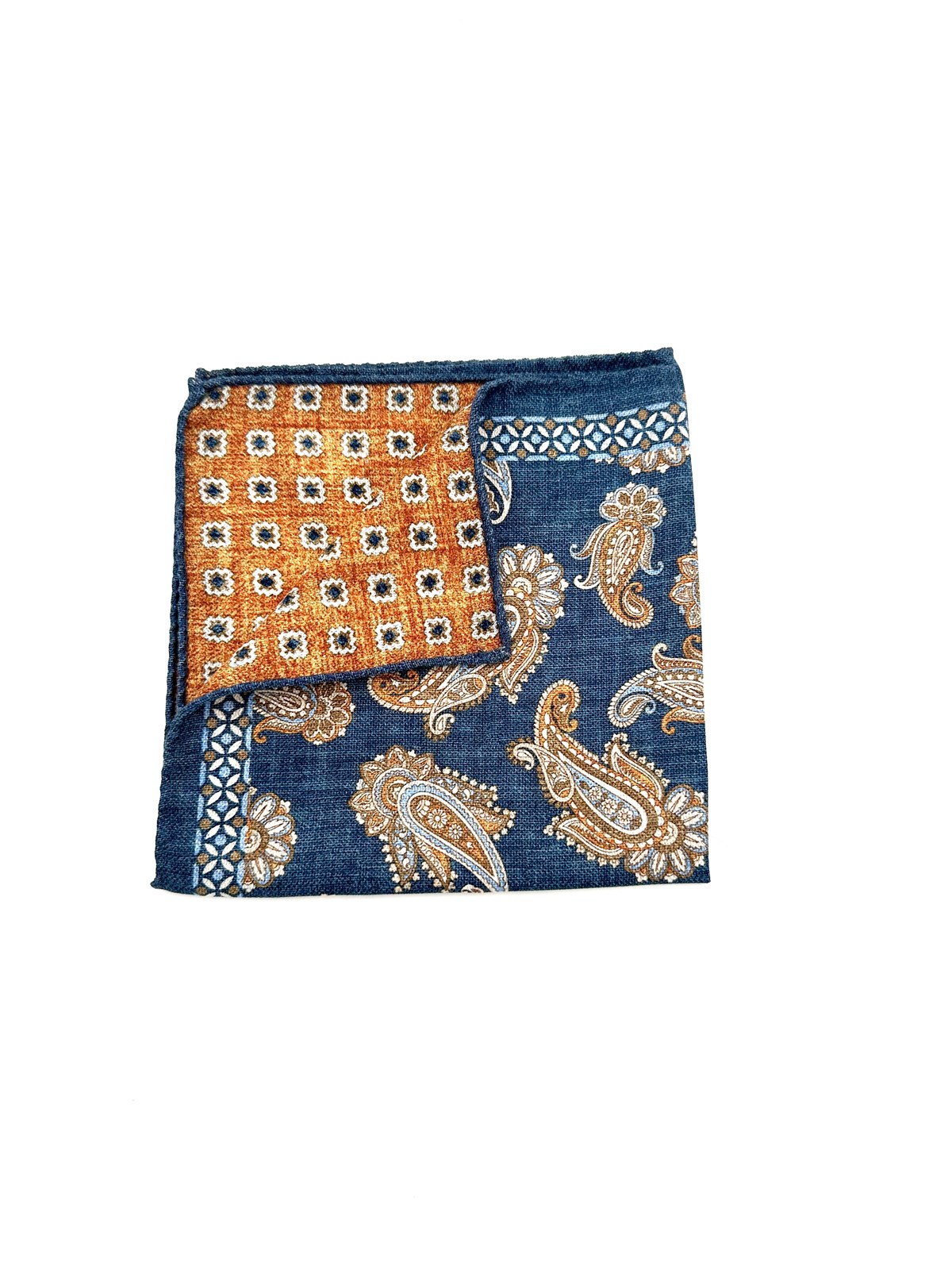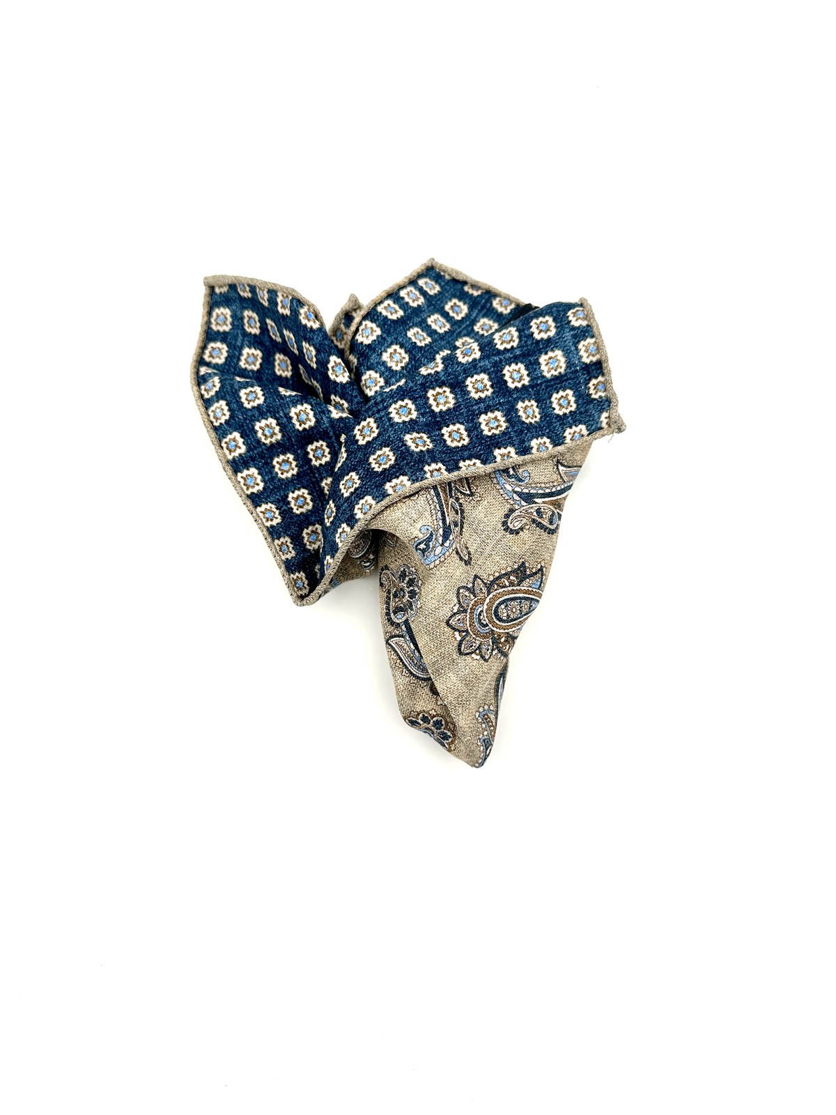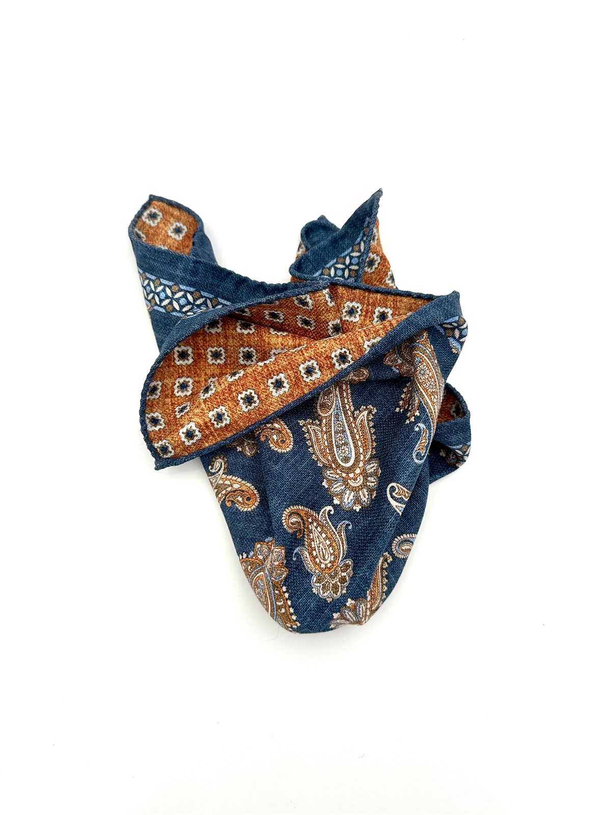 Pochette doppia stampa paisley blu seta