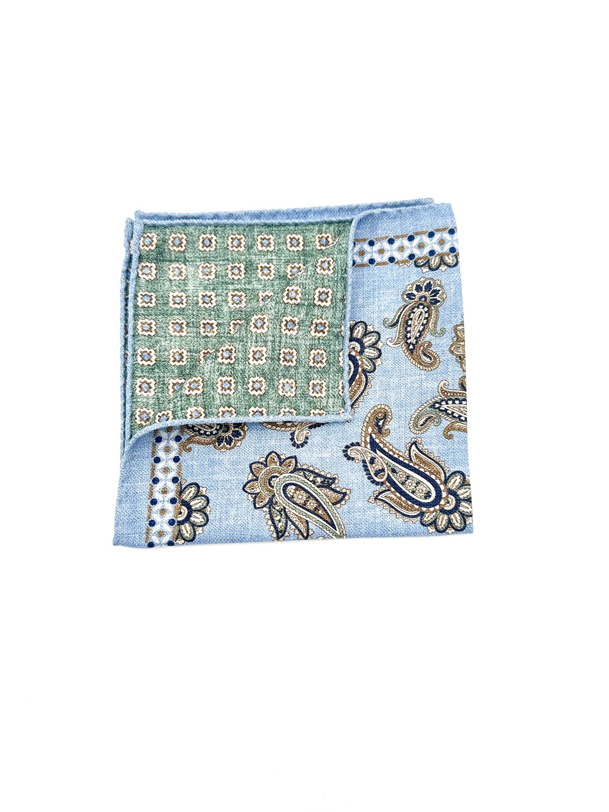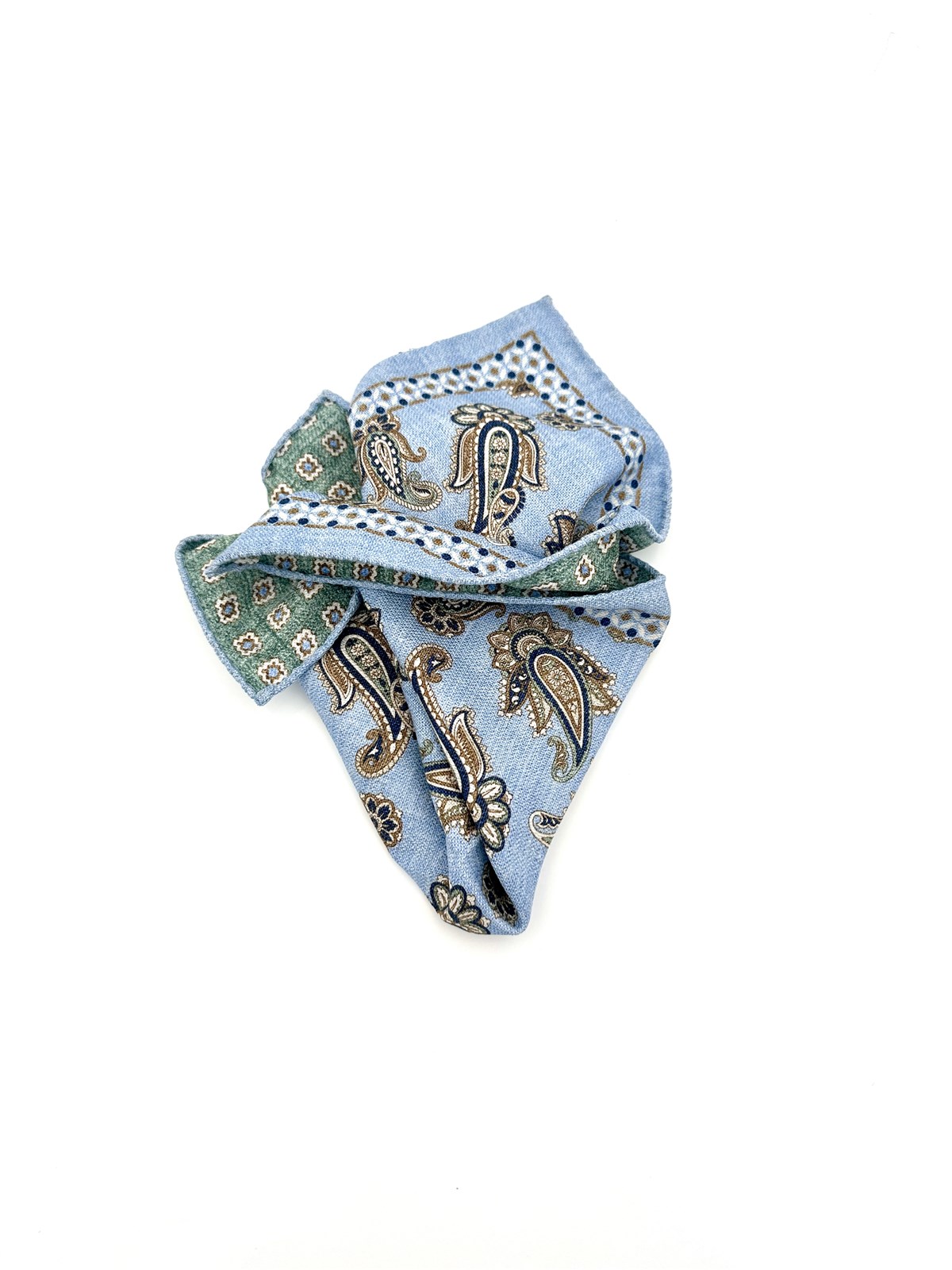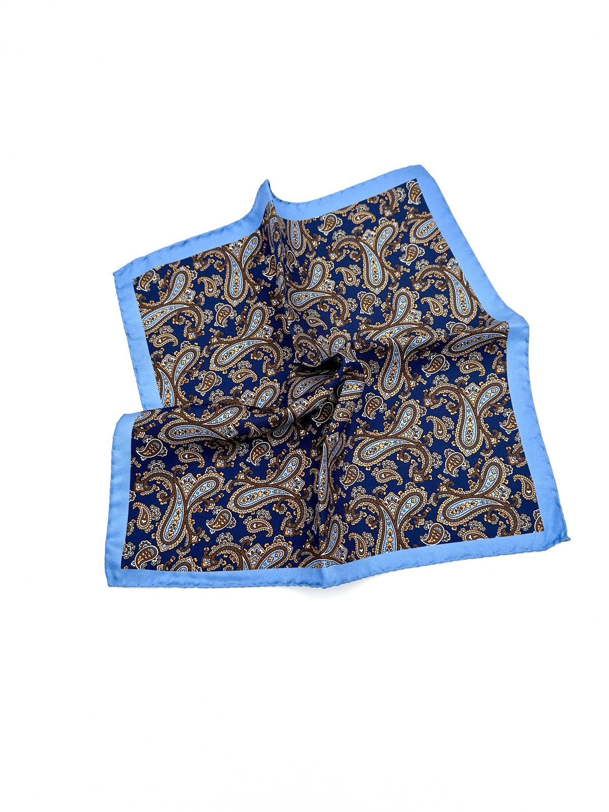 Pochette doppia stampa paisley azzurro seta