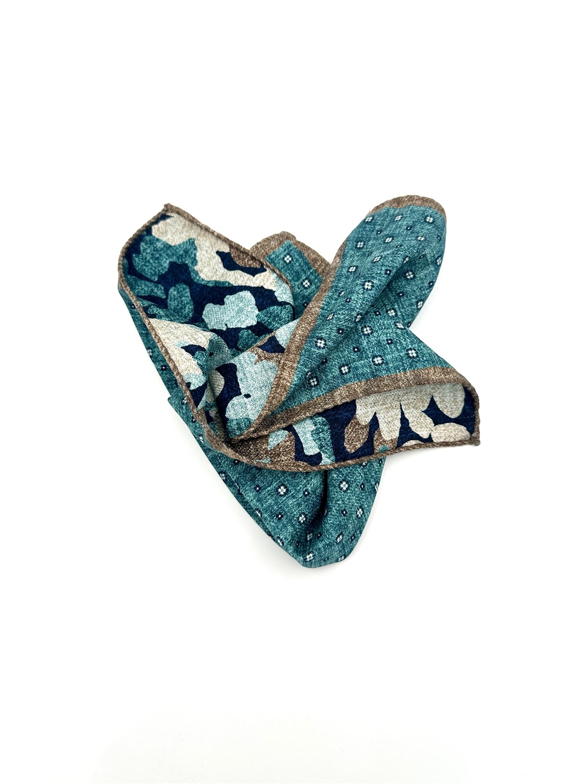 Pochette in seta microdisegno verde-blu